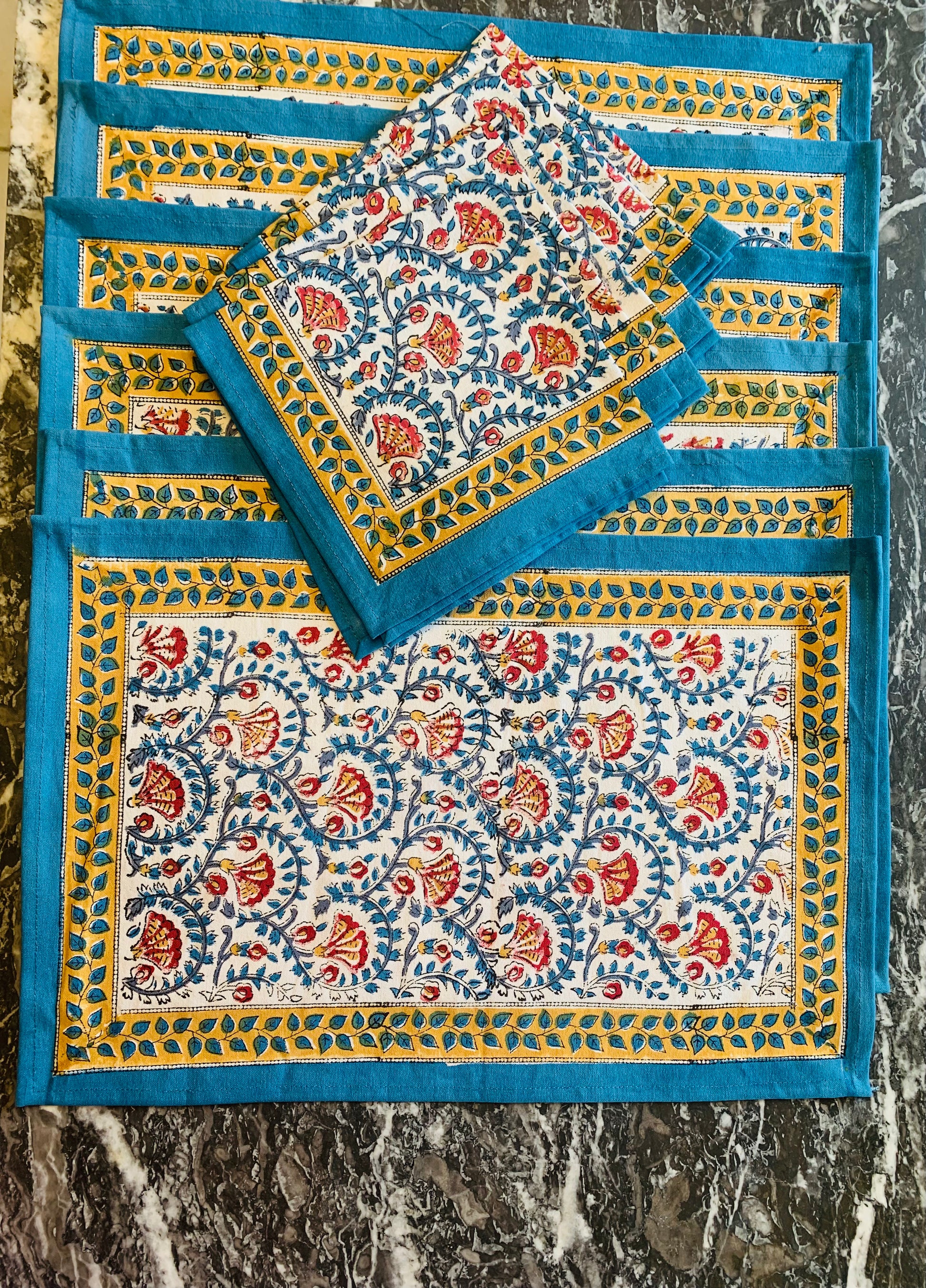 Bring a touch of Jaipur to your summer tables with these block print placemats. They add color and cheer to your decor while protecting your table. Perfect for outdoor dining or intimate dinner parties, they will brighten up your moments with family and friends.