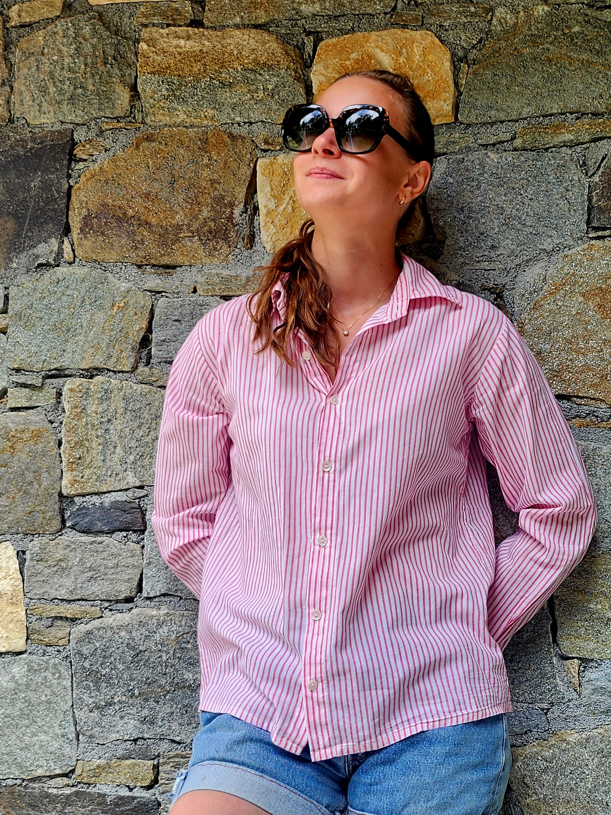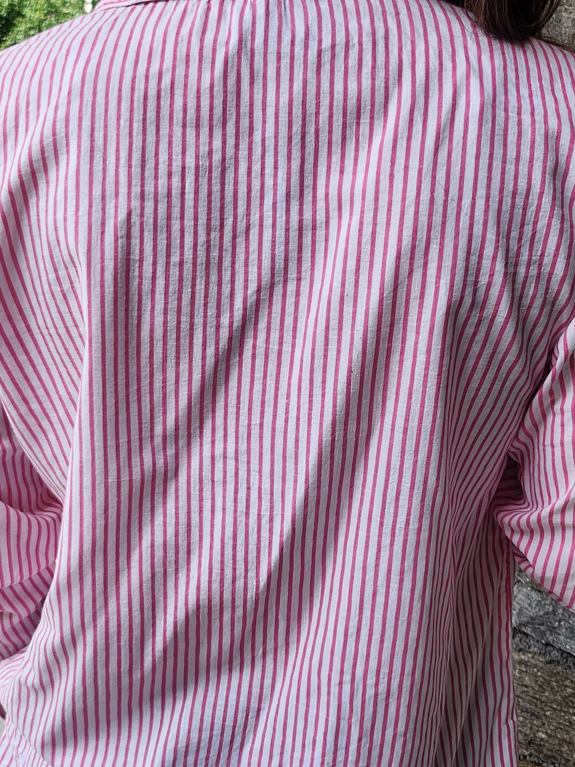 Découvrez la chemise rayée rose en coton indien fin, douce et légère. Facile à porter, elle apporte une touche de fraîcheur et de confort à toutes vos tenues, pour un style décontracté et plein de charme.