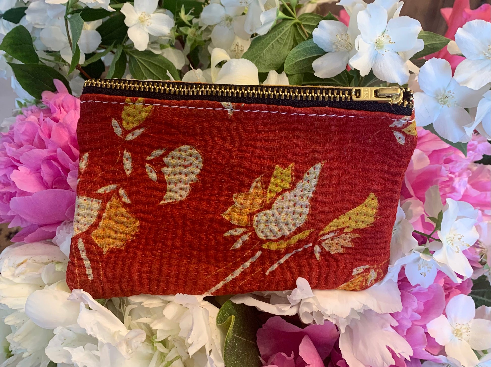 Petite pochette kantha rouge et jaune