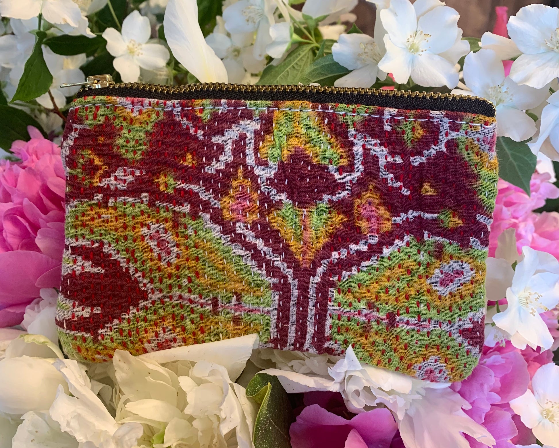 Cette pochette kantha ancien, idéale pour vos besoins quotidiens tels que porter de la monnaie et des cartes de crédit. Fabriquée à partir de tissu kantha ancien, chaque pochette est unique en son genre. Ajoutez une touche d'histoire à votre style!