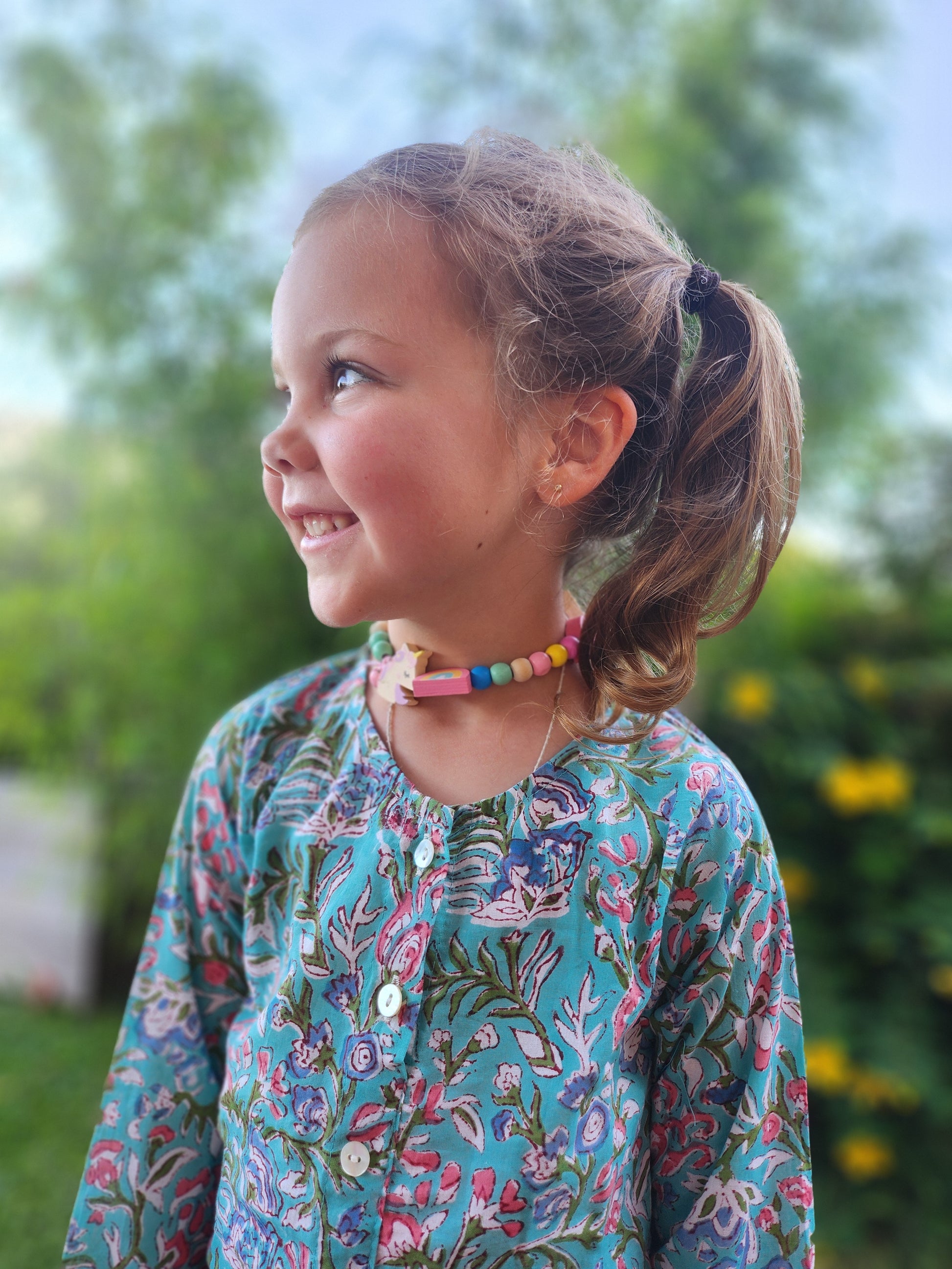 On adore cette petite robe "Charleston" avec son style rétro irrésistible.! Son design coloré en block print attire tous les regards tandis que sa coupe élégante lui donne une allure stylée.Un must-have qui combine charme vintage et confort pour les petites fashionistas !