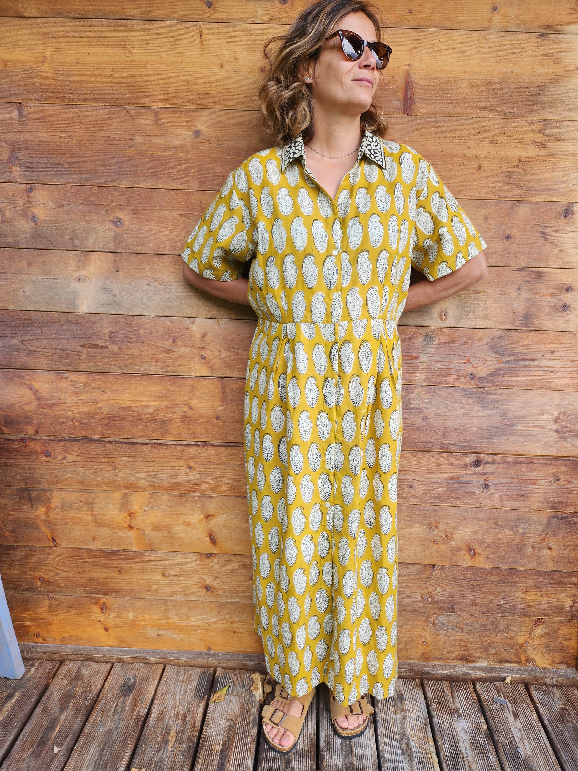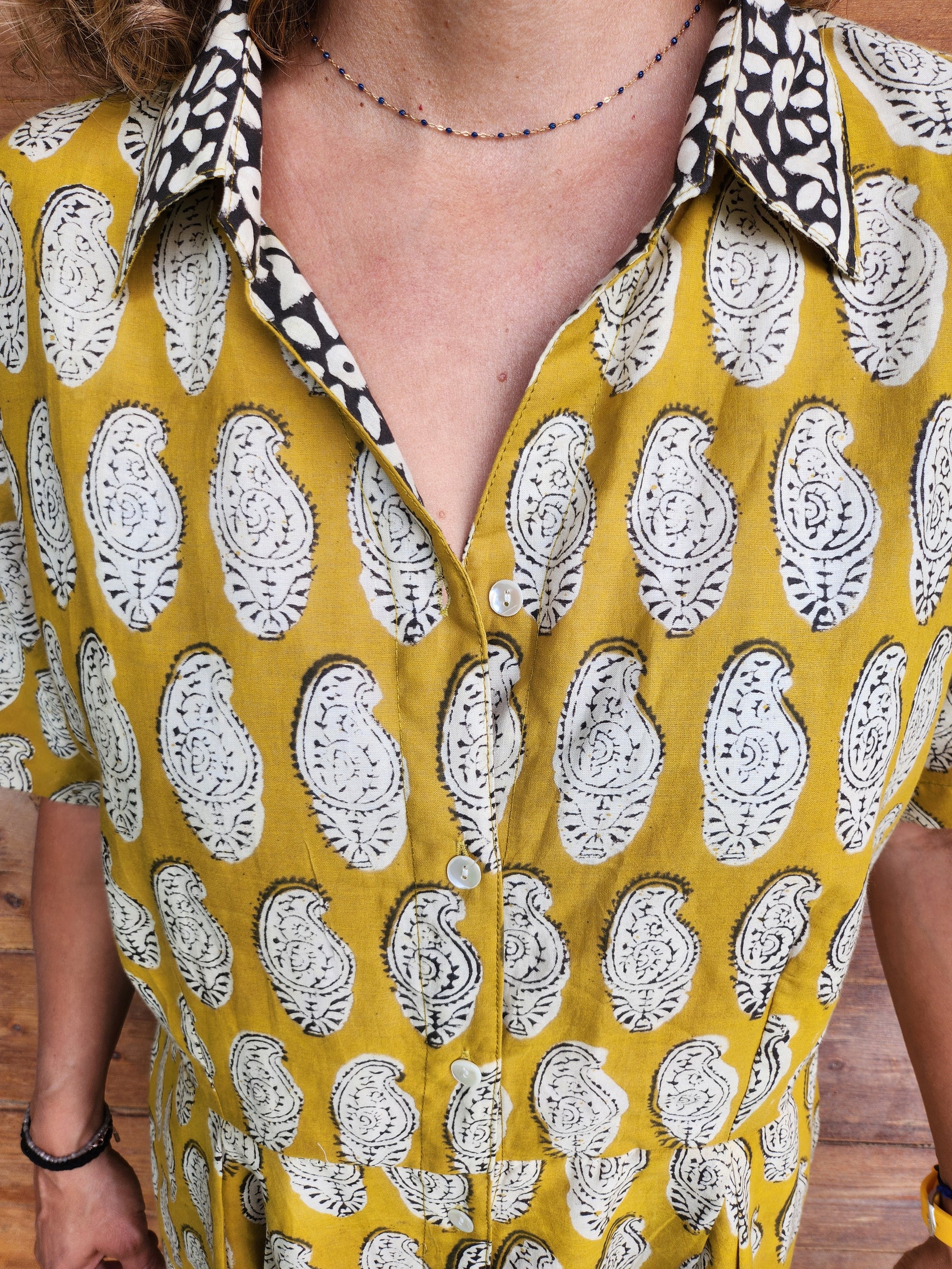 Faites-vous remarquer avec notre robe "Delhi"! Parfaite pour les soirées d'été, cette robe chic est à la fois sobre et élégante. Son magnifique block print lui donne un charme unique. Profitez de belles soirées d'été avec style et originalité.