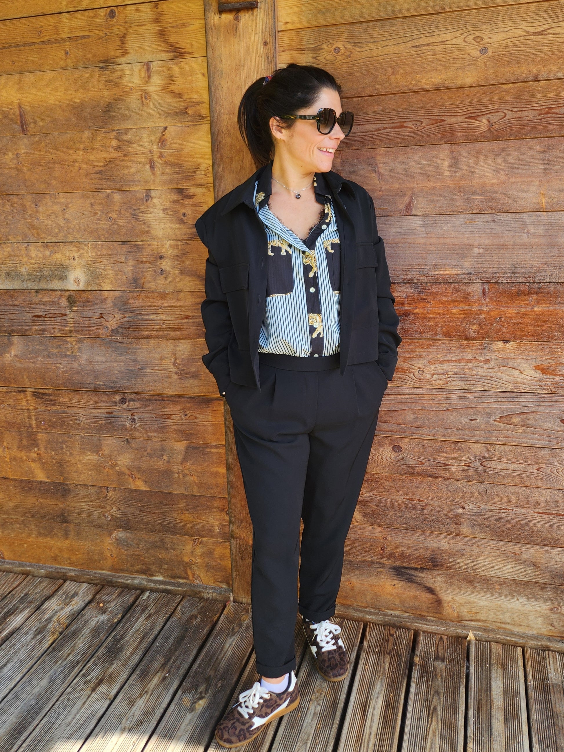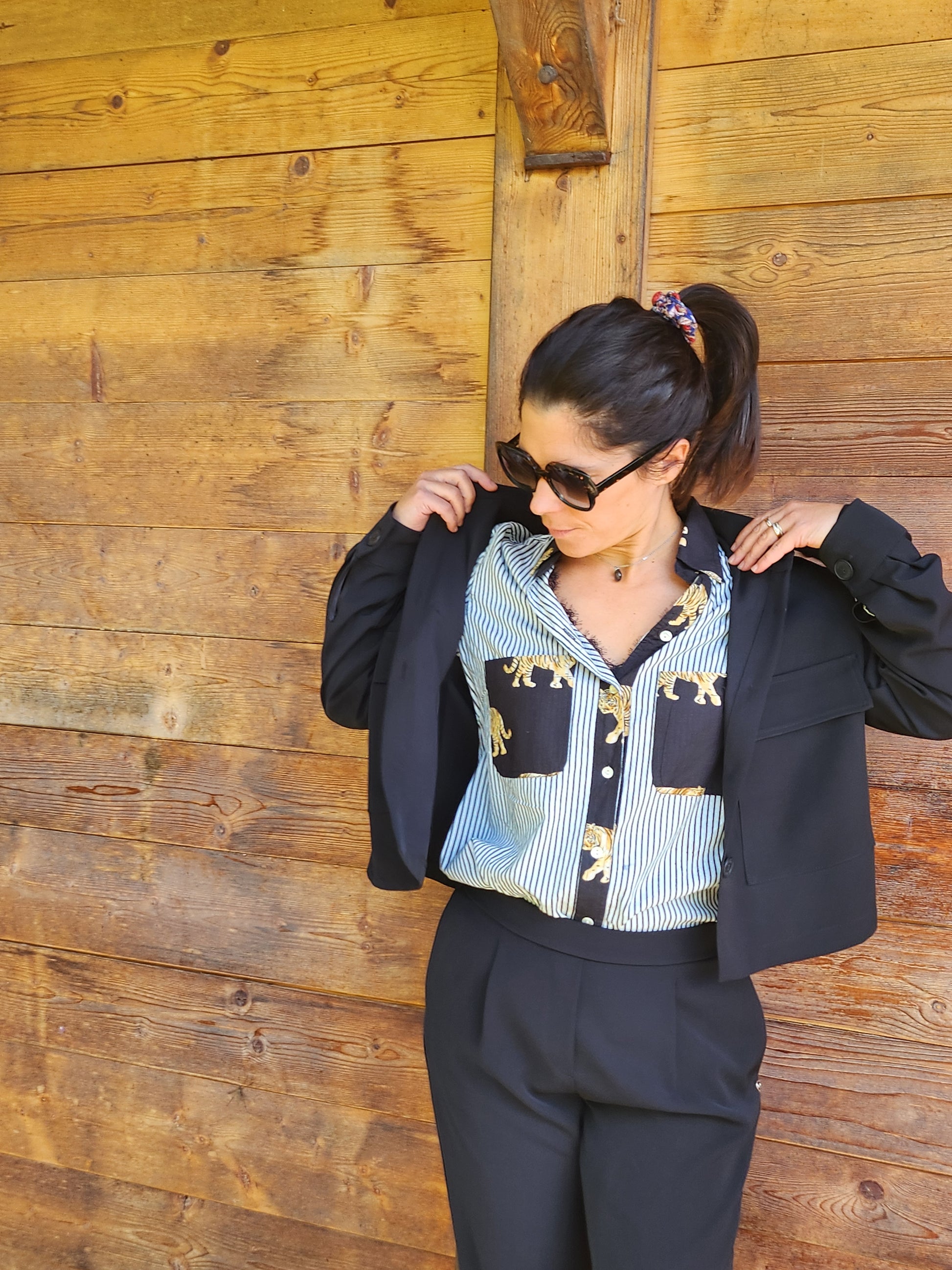Affirmez votre style avec cette chemise tigre audacieuse, aussi à l’aise sur un tailleur puissant que sur un jean rebelle.