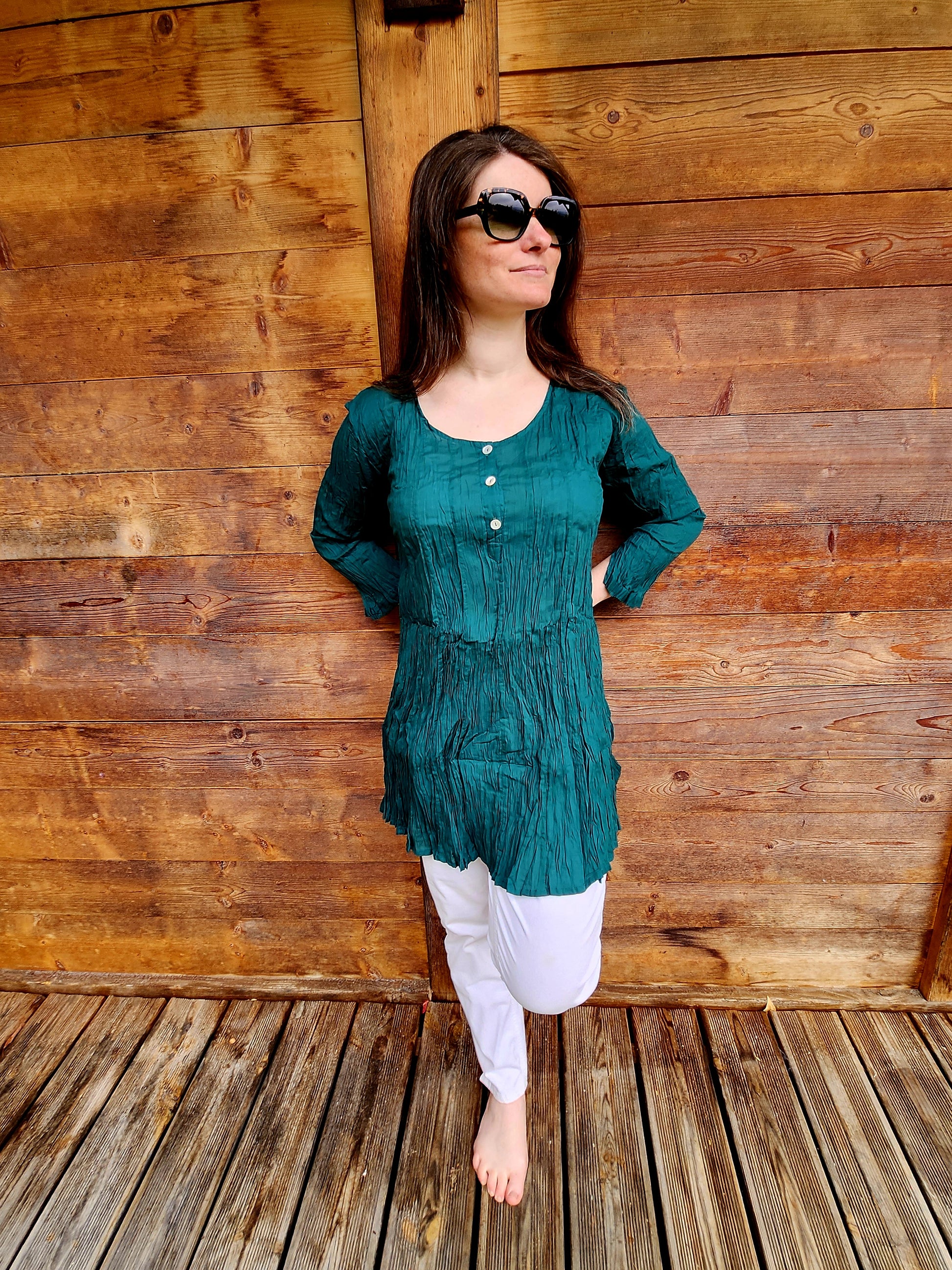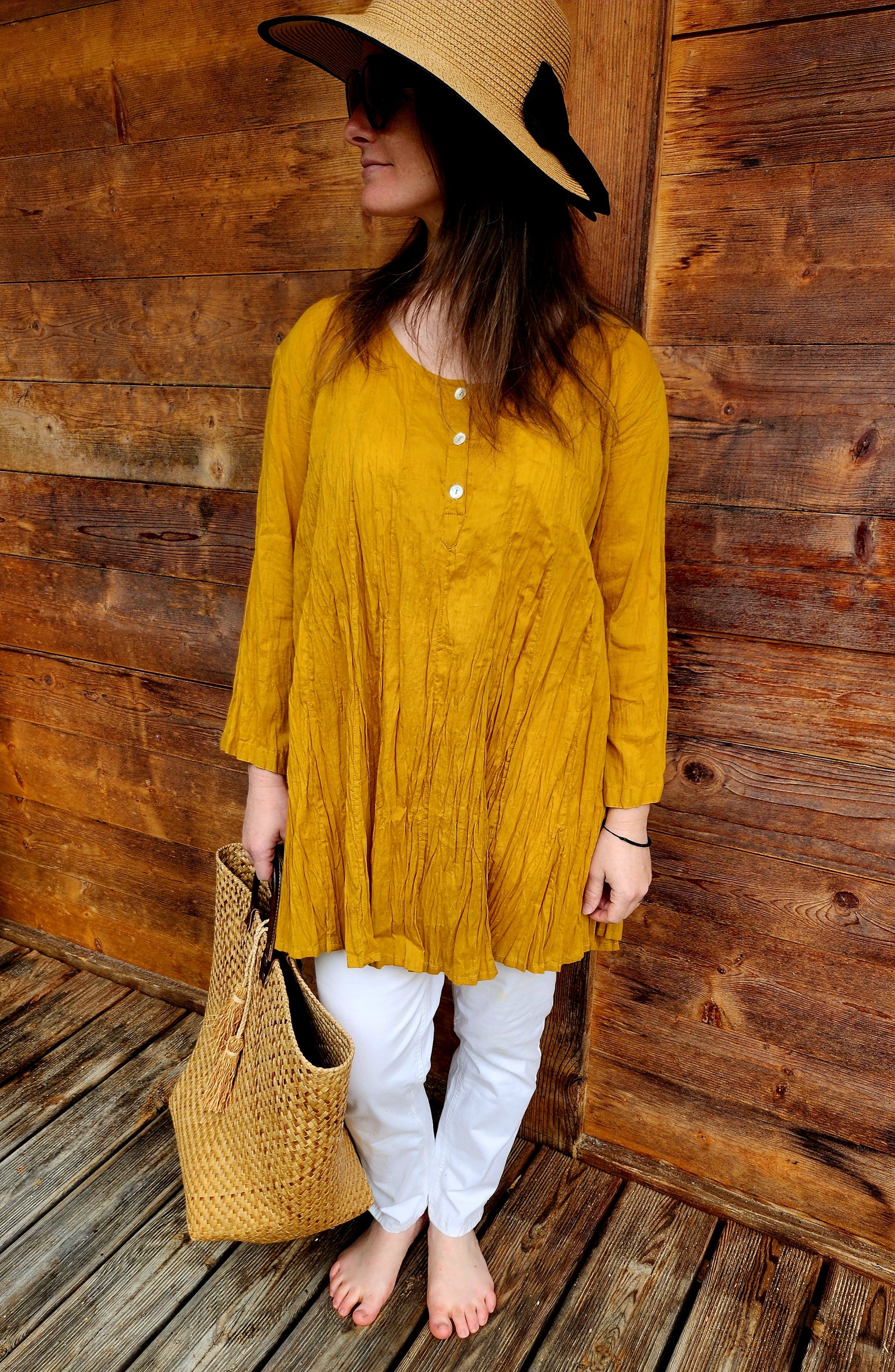 Laissez-vous séduire par cette tunique unie longue en coton froissé, parfaite pour jouer avec les styles. Facile à porter seule ou sur un pantalon, elle combine confort et légèreté pour une tenue simple mais pleine de peps.